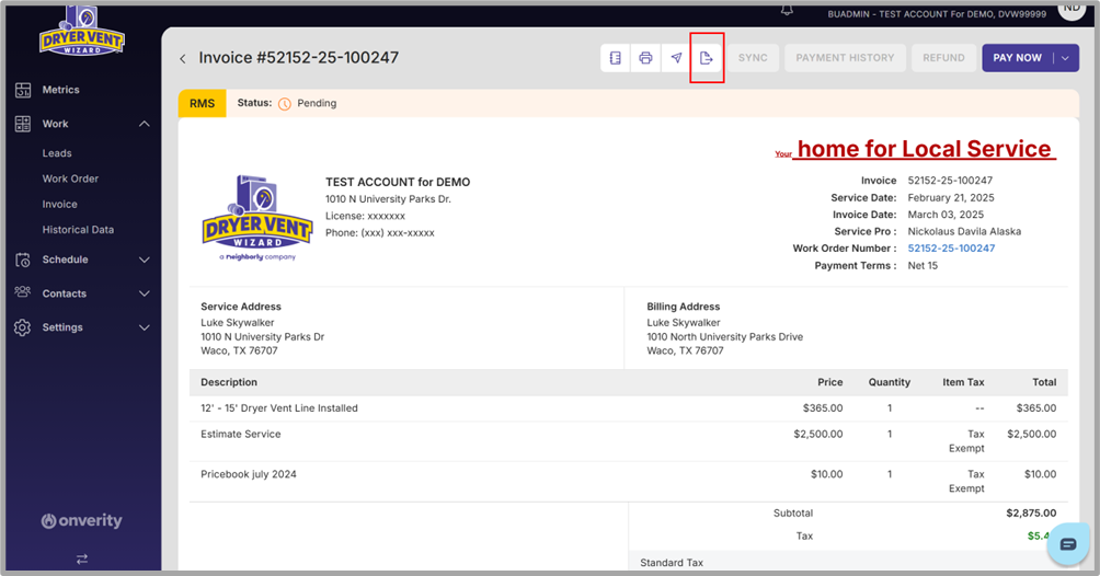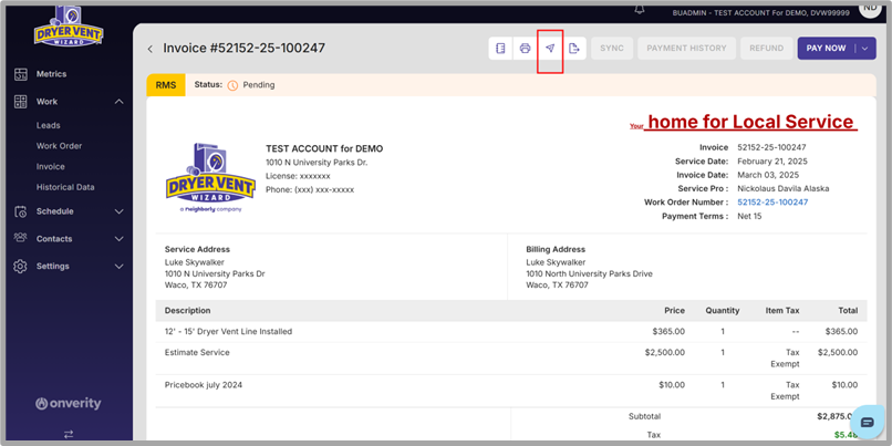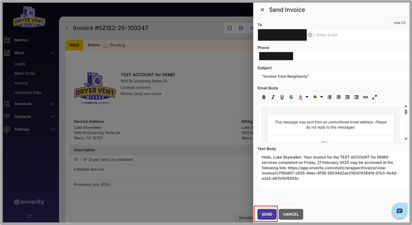 Option 1 (Recommended): Sending the invoice via Email or SMS/Text from Onverity.