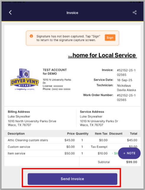 An Onverity user has a few options to send an invoice that may best suit their customers’ needs from both the Back Office and Field App.