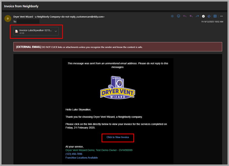 - In the email, the customer will receive both a PDF of the invoice and a link to access the invoice through a web browser.
