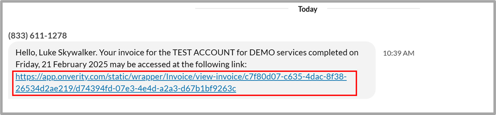 - In the SMS/text, the customer will receive only the link to view the invoice via a web browser.
